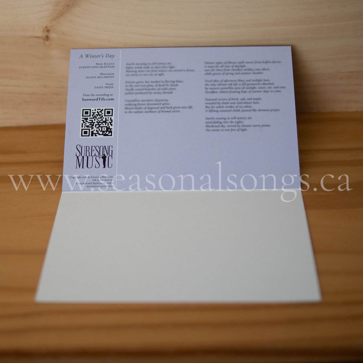 Your purchase of this greeting card also includes a digital download of the audio for all four movements of “Seasonal Songs for Southern Ontario”: